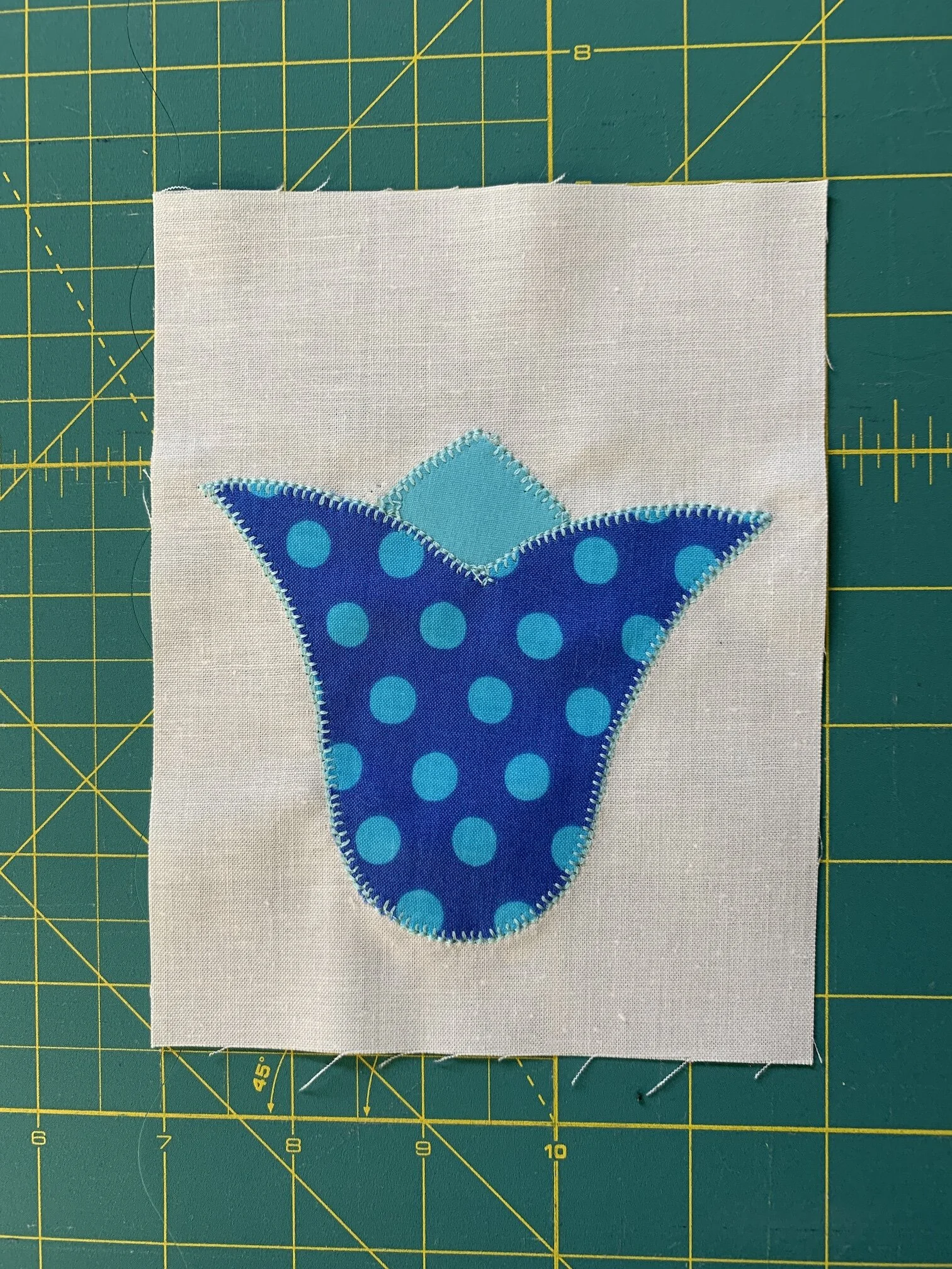 While I’m waiting for the fabric I turned my attention to appliqué. The pictures below are my first attempt and I’m pretty pleased with the steps and the outcome. The first picture is the pattern and the second is the finished block. I used this fantastic tutorial by Julie from The Crafty Quilter — thanks for her clear instructions with lots of pictures. I want to use appliqué in a small way on some baby quilts - perhaps and elephant or a giraffe or . . .