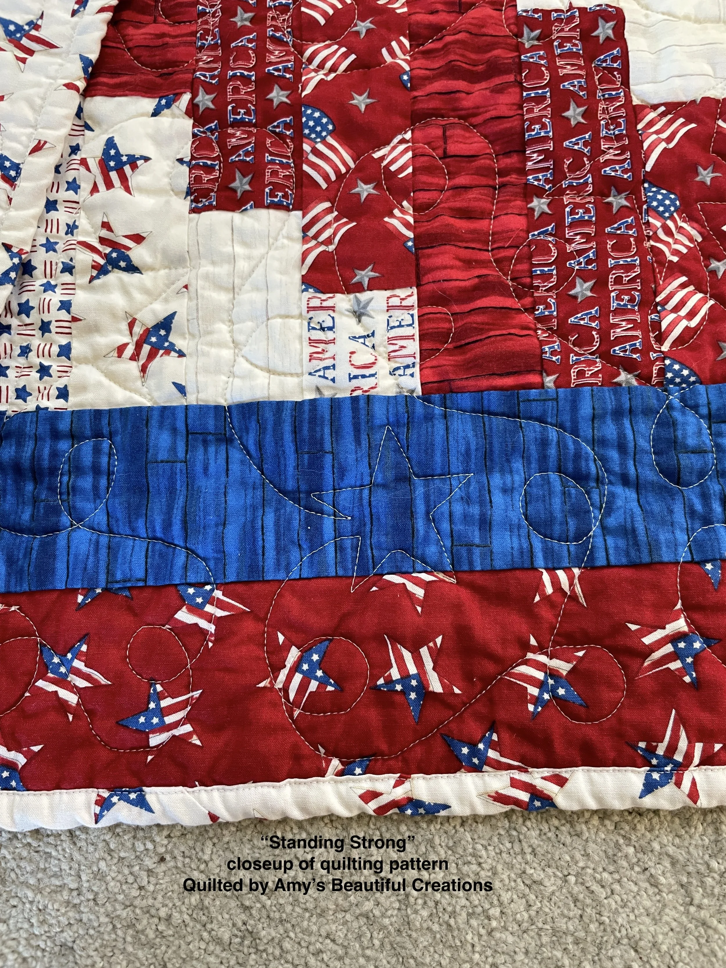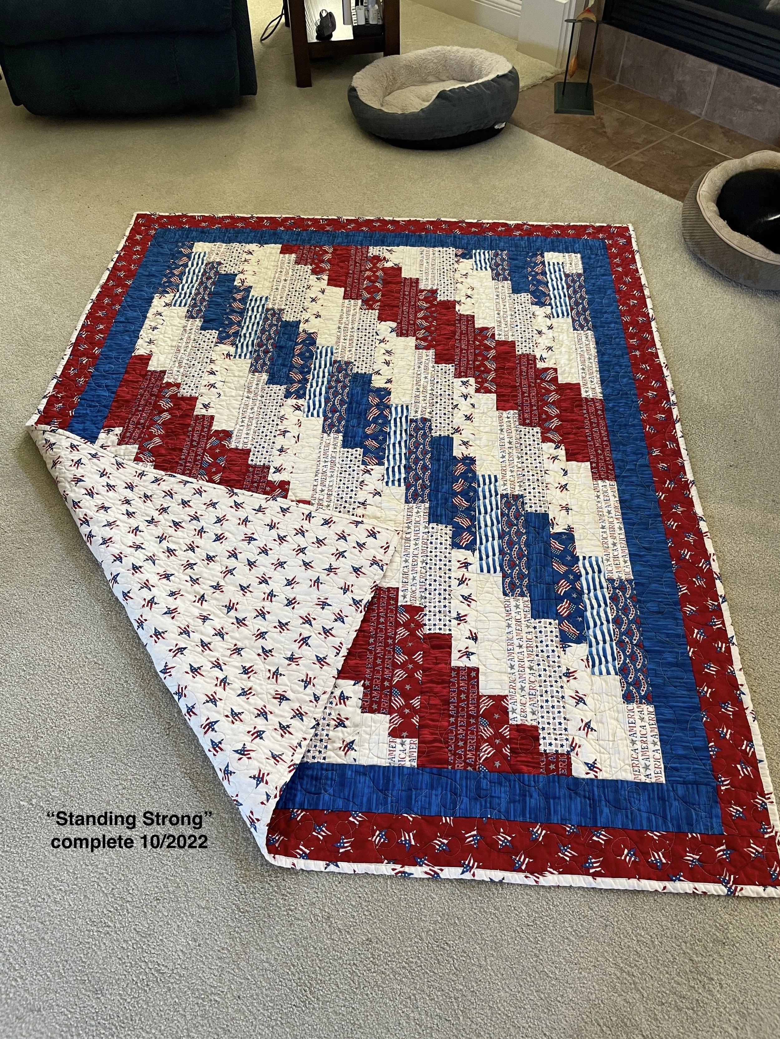 I’m delighted to write that the Standing Strong quilt is complete. I’ve decided to gift it directly to my nephew, Billy, a career Army Sergeant.