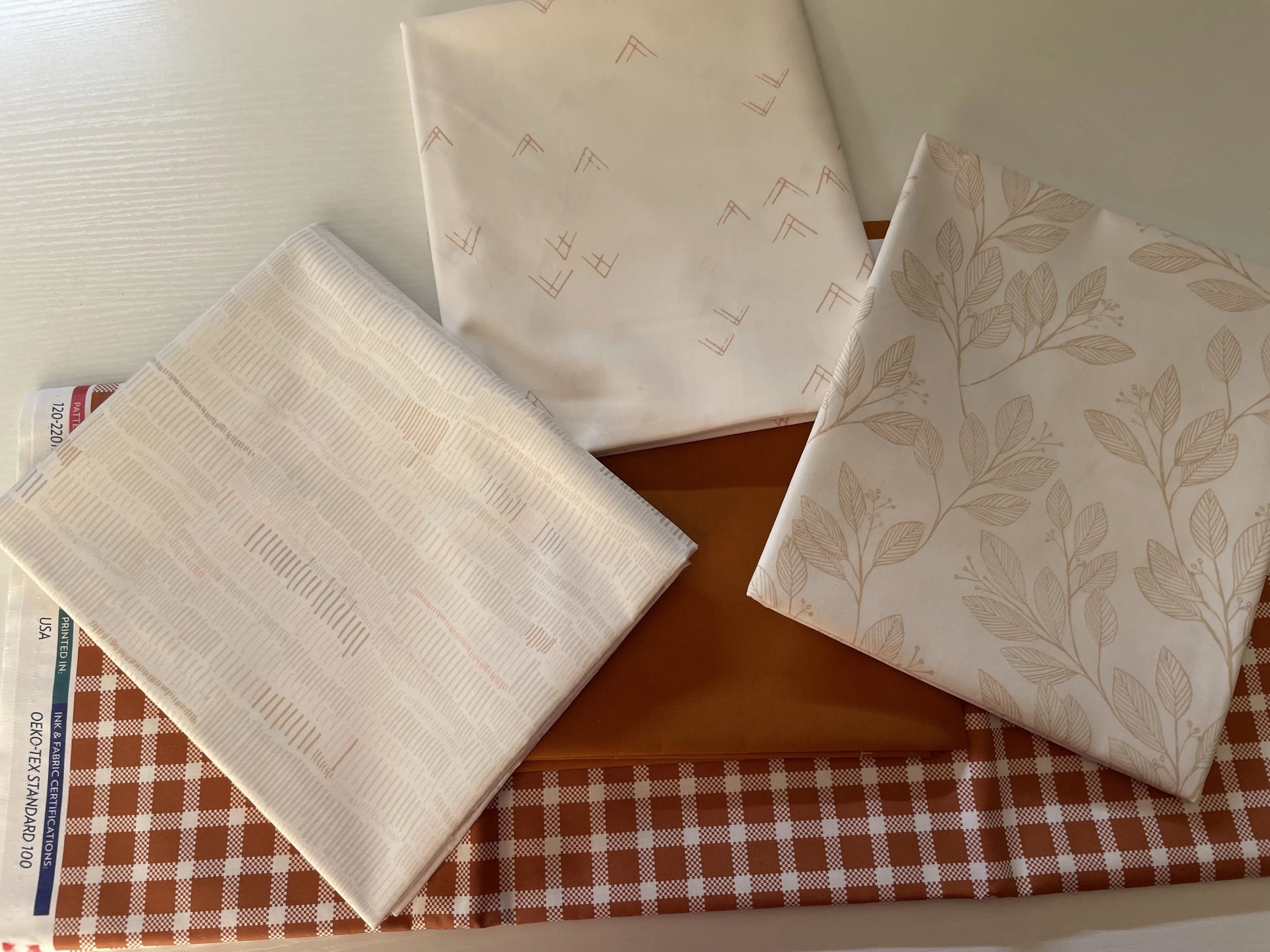 We both fell in love with that wonderful bronze color and the beige and the black sashing !! I reached out to my favorite Etsy fabric person, Natalie of Everyday Fabric Shop and she put together a fabric pull based on the picture above.