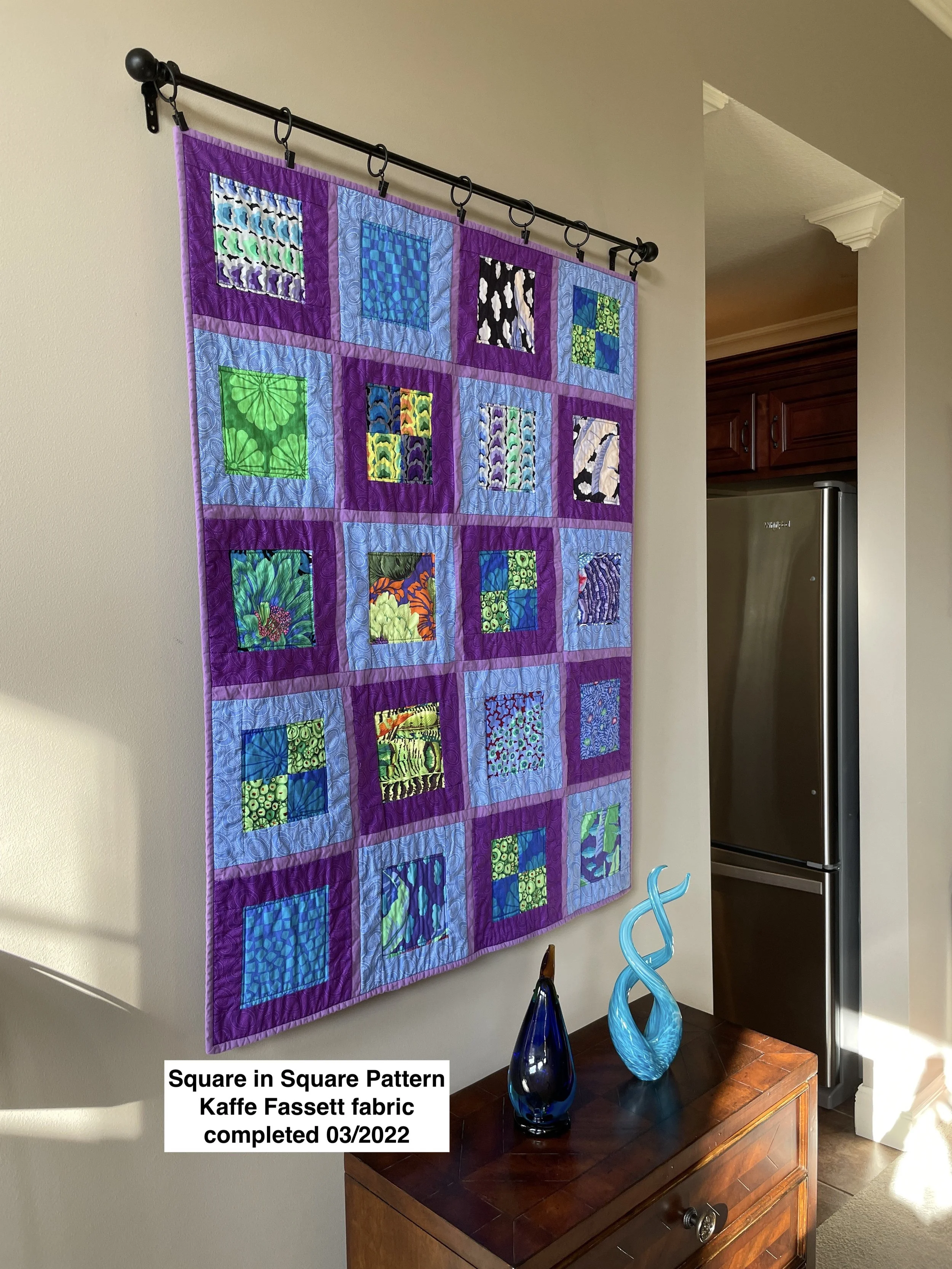 The square in square quilt is complete !! I liked working on this and I like the quilt. It will go into the pile of quilts to be donated once Mike and I are tired of it.