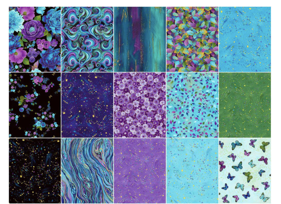 I’m creating the blocks for the Boxes of Colour quilt. The fabric I’m using is “Utopia Metallic” by Designer Chong-A Hwang for Timeless Treasures.