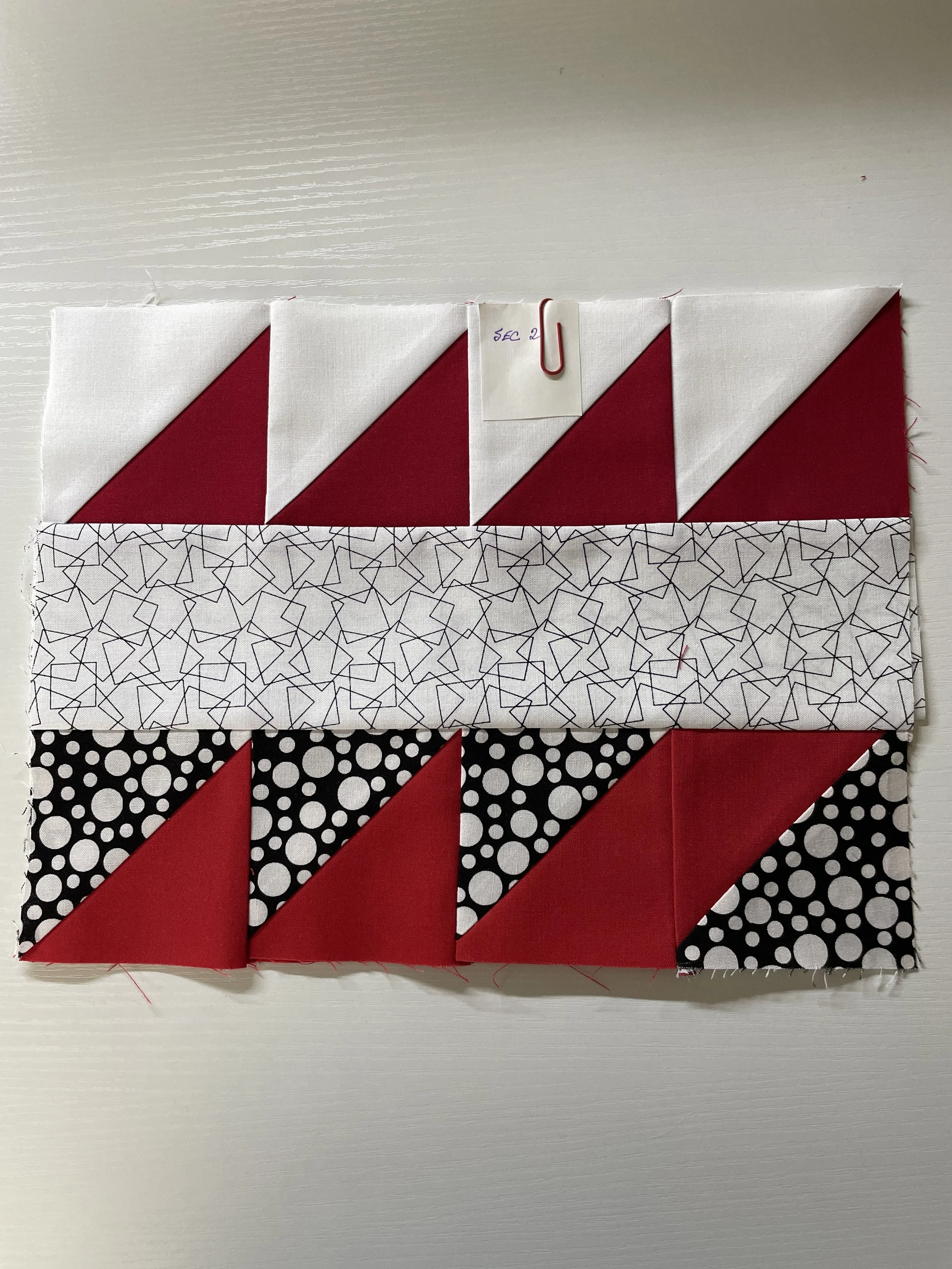 I received Clue #2 for the Cotton Cuts mystery quilt. Here it is. I really like the fabric but it will be some months before the final reveal. In the meantime I’m getting some experience with flying geese (the red and white in the first row).