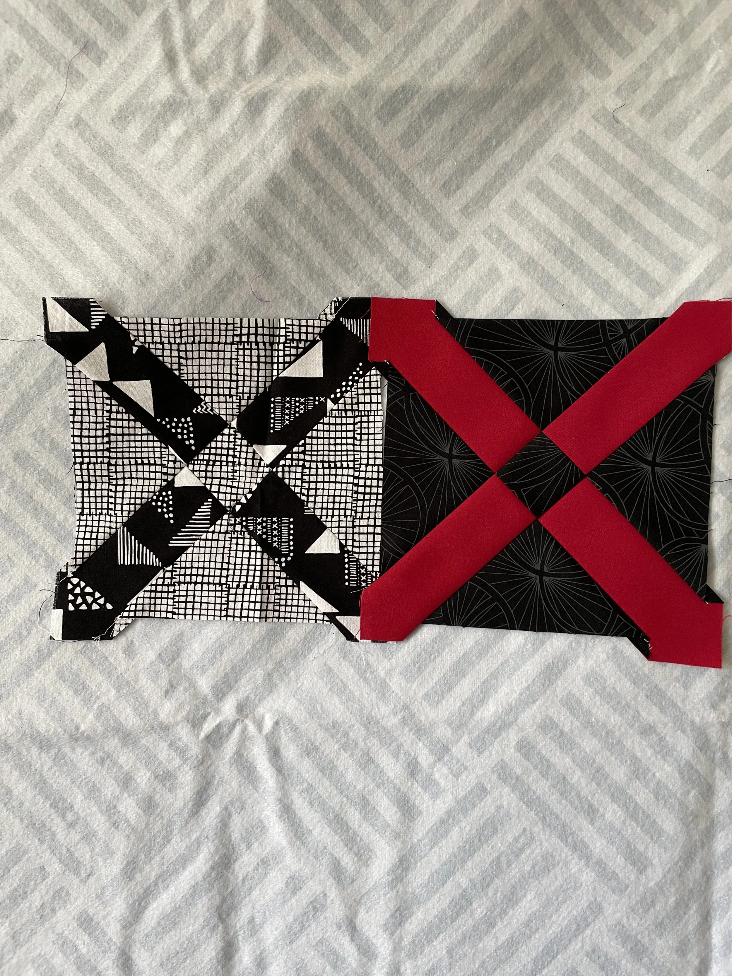 My block swap partner and I mailed each other our Old Italian block. On the left is her block and mine on the right. They complement each other very well and I assume they’ll be incorporated into the mystery quilt.