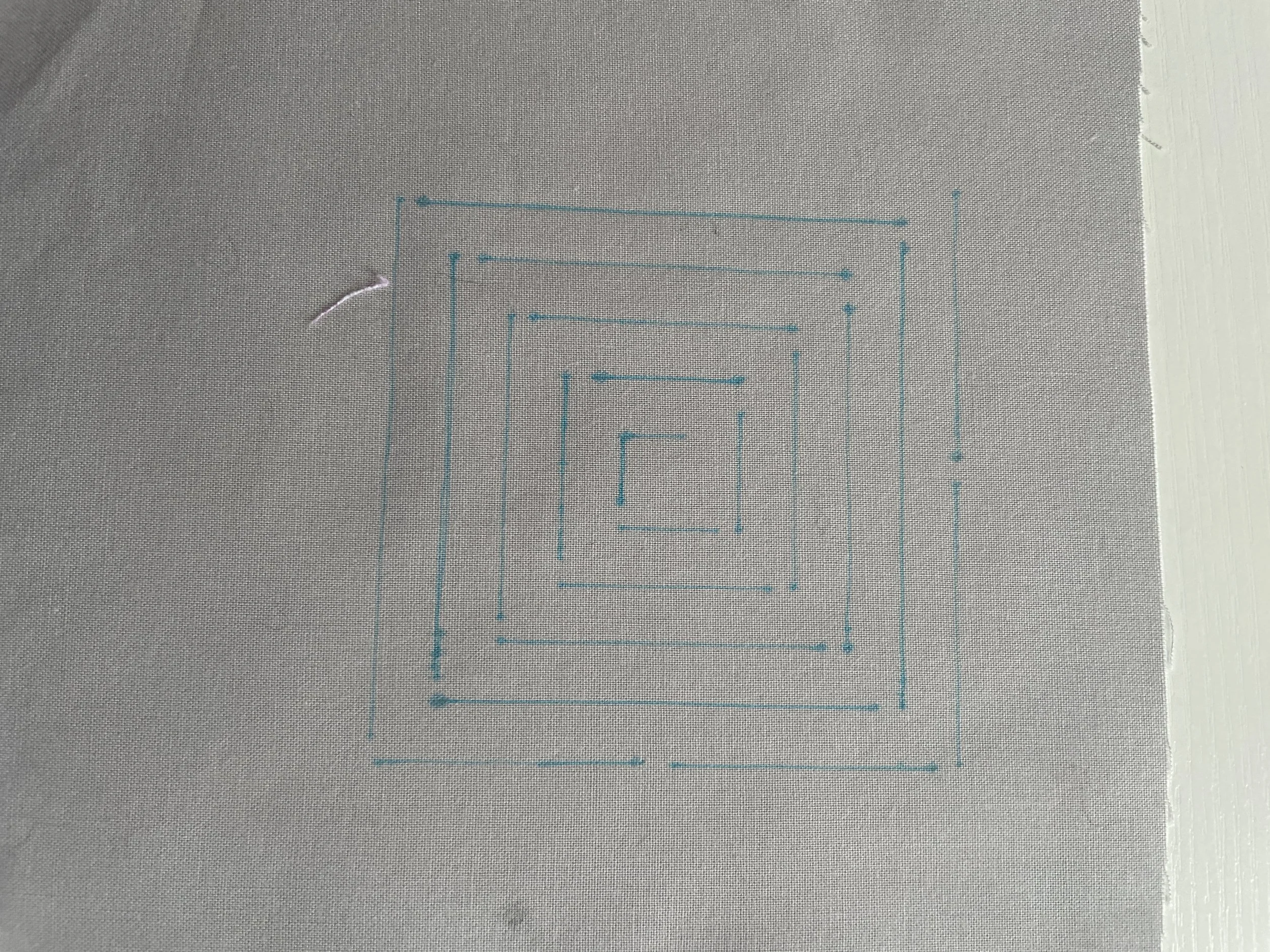 I’m thinking that the white blocks will have a square spiral (possibly in a variegated thread). Here’s a look at the square spiral template.